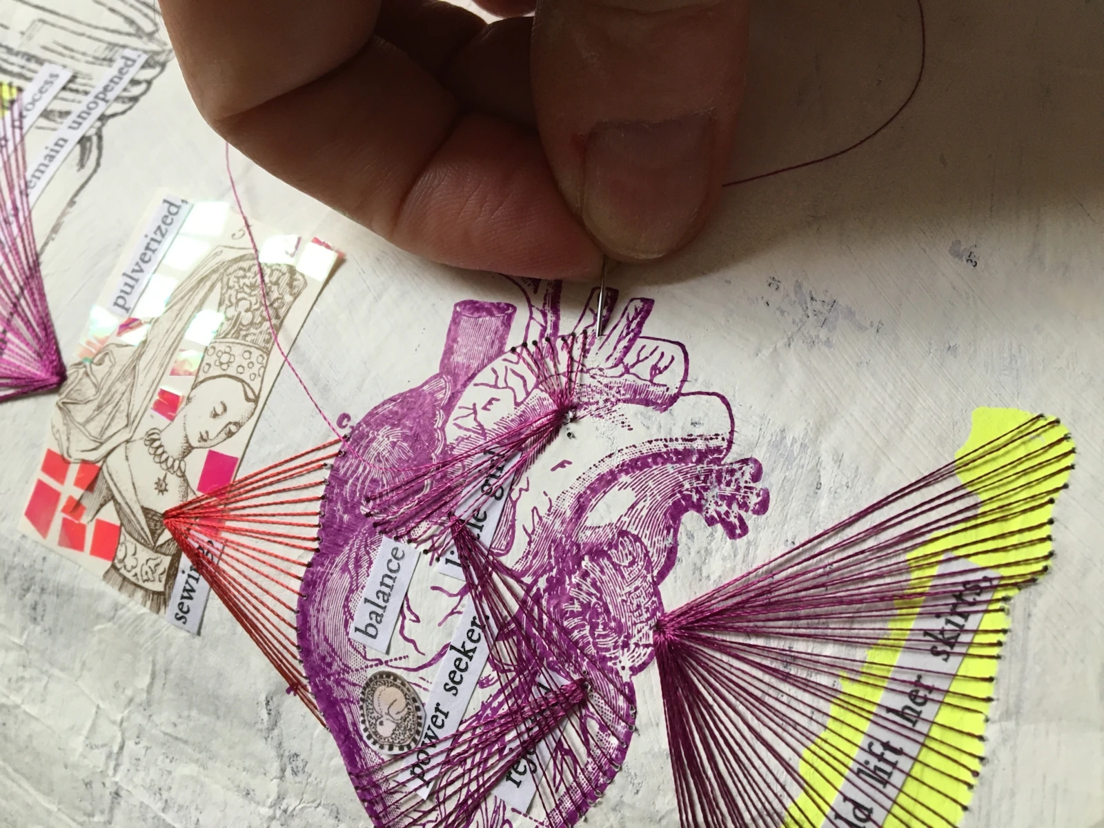 The Isis Evocology bricolages flock logic to vivify and piece together her fragment collections with sewing implements that suture.