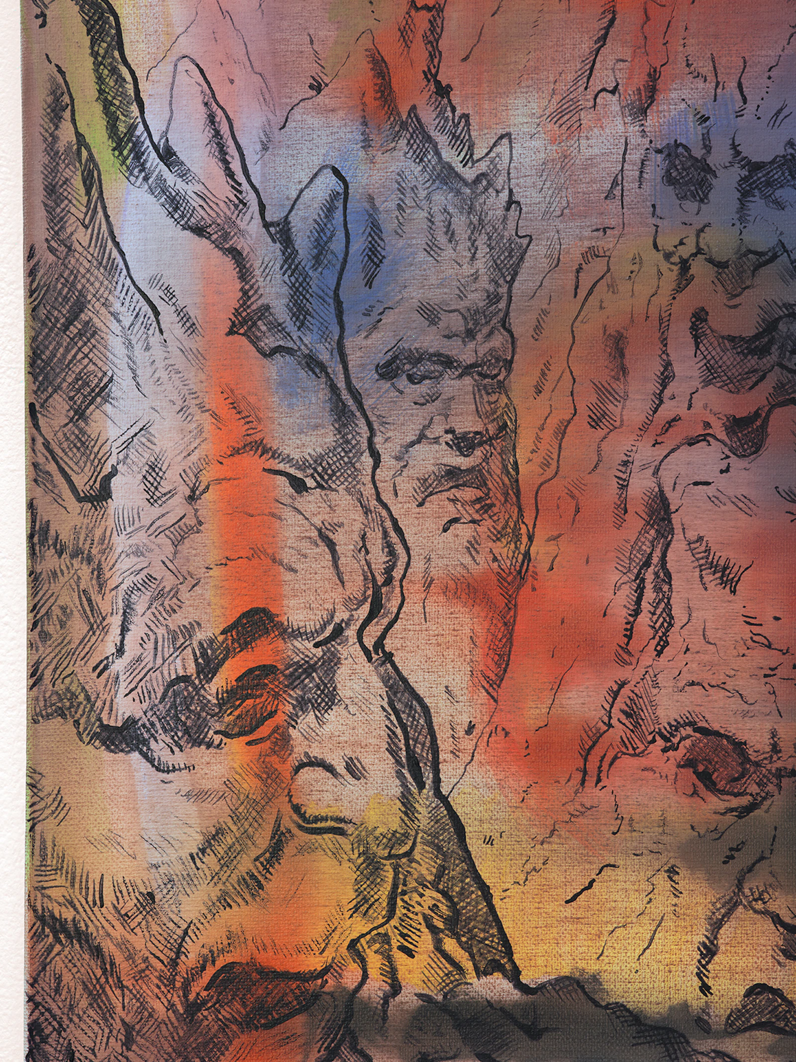 oil, acrylic and sand gel medium on canvas, 119 x 198cm.