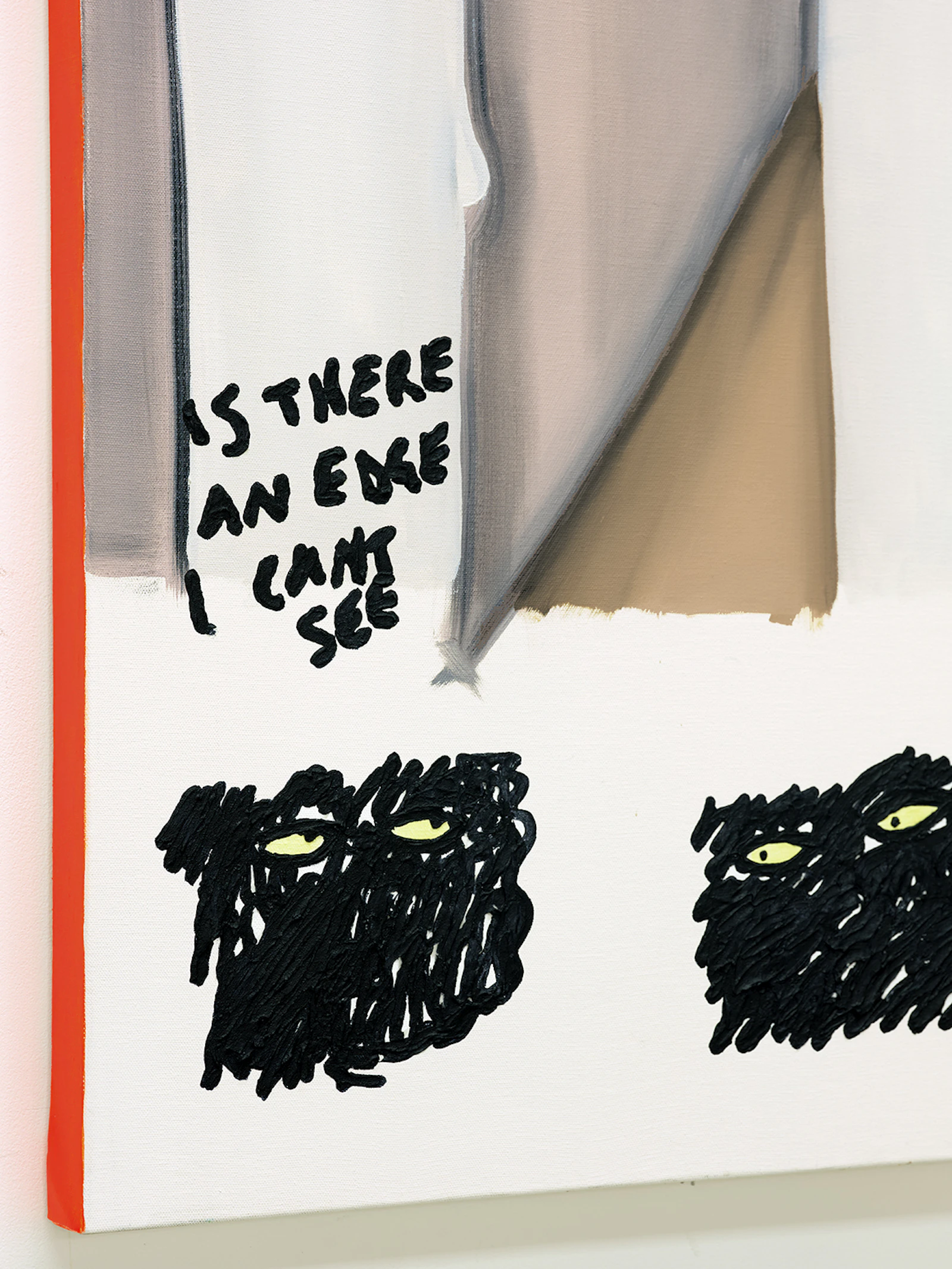 Edges both names a painting (made before the most recent lockdown) and also points towards artistic strategies of experimentation: what we might otherwise call painting's "edginess". In a philosophical sense, conceptualising an artwork's edge(s) requires a mapping of it's onto-epistemological parameters: running across/between its different materials, between the artwork and its beholder who "gets it", between the hand of individual artists and the collective work of communities, between art objects and history, between art and not-art, and crucially for much contemporary painting discourse, between the physical process of painting and our increasingly omnipresent use of the internet.