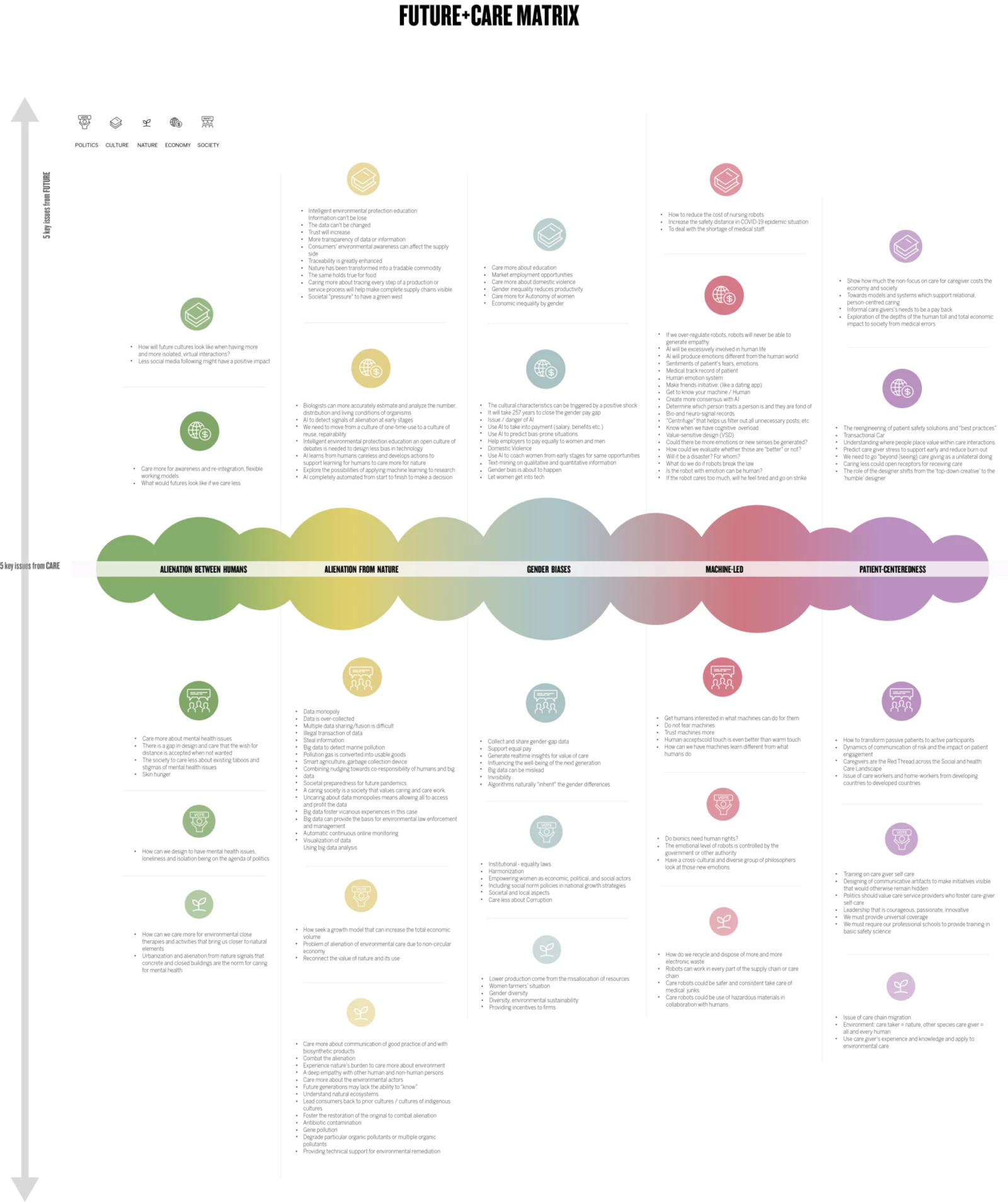 We identified the key issues of gender inequality and lack of safety and care by using a matrix of key issues in care and in design futures.