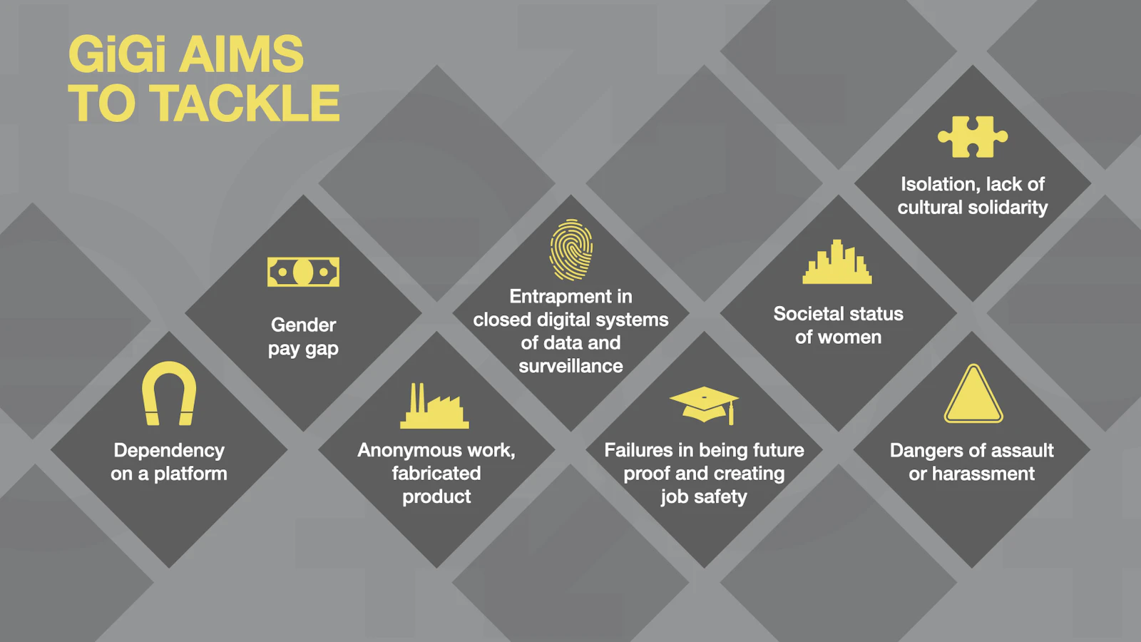 GiGi is a community driven support network for the future, operating as a NGO. It provides a physical and digital ecosystem and community for female delivery workers. It aims to break the dominance of big players (corporations) that dictate the market and the rules of engagement. It provides training services for women to get accustomed and use latest technologies (such as piloting a drone for food delivery) and offers a platform to exchange and support.