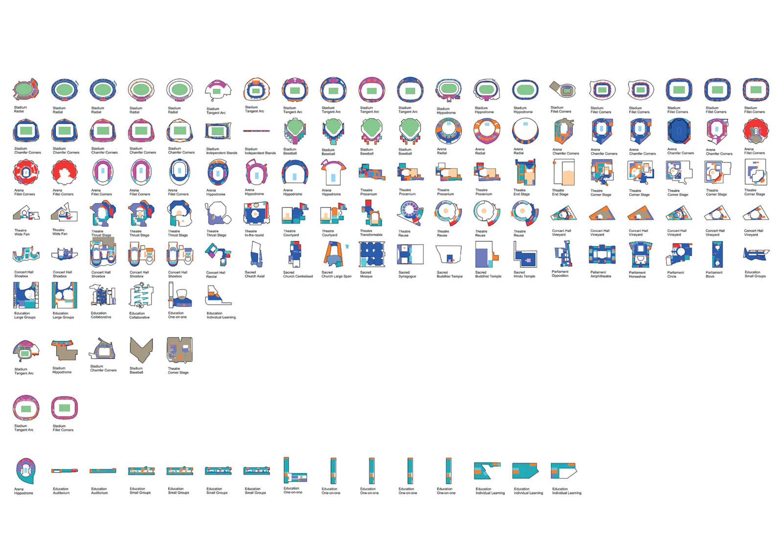 This practice-led research explores the problem of stadia design in relation to design parameters and drivers, morphological classification, and machine learning. Stadia are one of the largest and most challenging genres to construct, but little has been done to understand how they are designed as an interconnected system of design drivers in contrast to the traditional compartmentation of the design process into separate disciplines. This research examines the benefits and limitations machine learning brings to the complexity of stadia design and operation in relation to efficiency of use and a structured approach to understanding stadia morphology, form generating design drivers and adaptability to change.