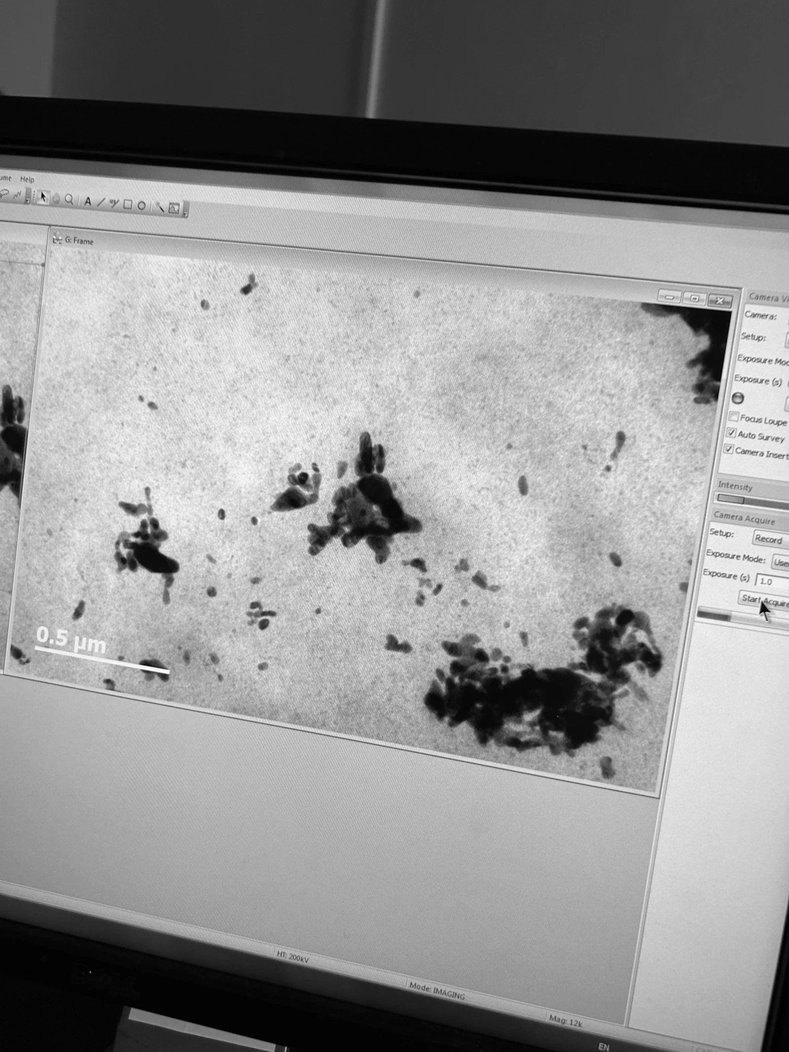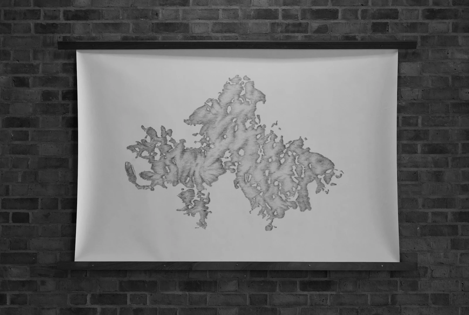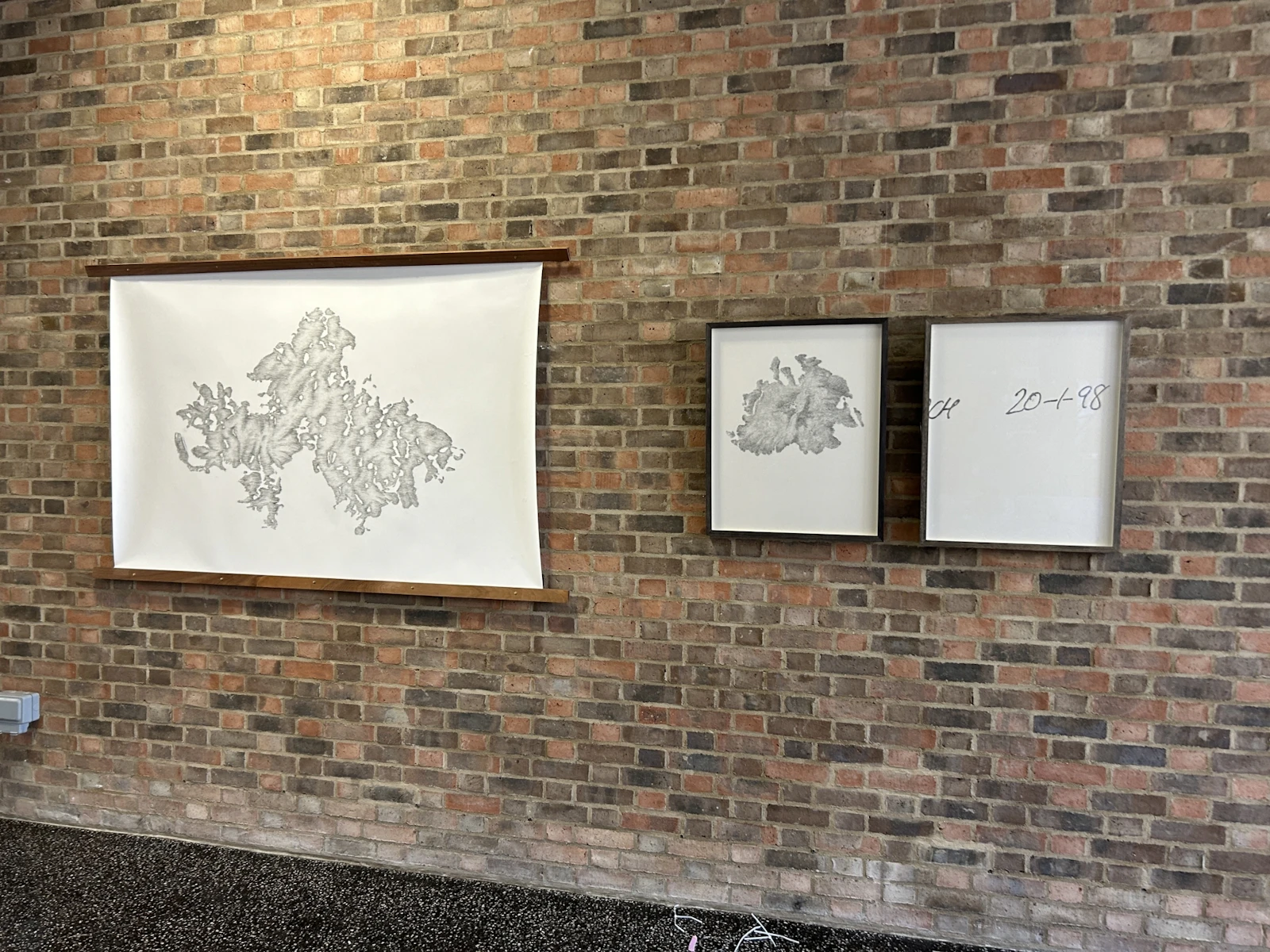 In the studio, for subject matter, I reference my original images. That stone staircase from Tanlay is one. Grain imagery from an electron microscope is another. And artefacts found on my negatives: from names, dates and notes jotted on the selvedge to scratchings and the razed remnants of the film itself, are all considered for reawakening. Everything has a new value. A new importance.