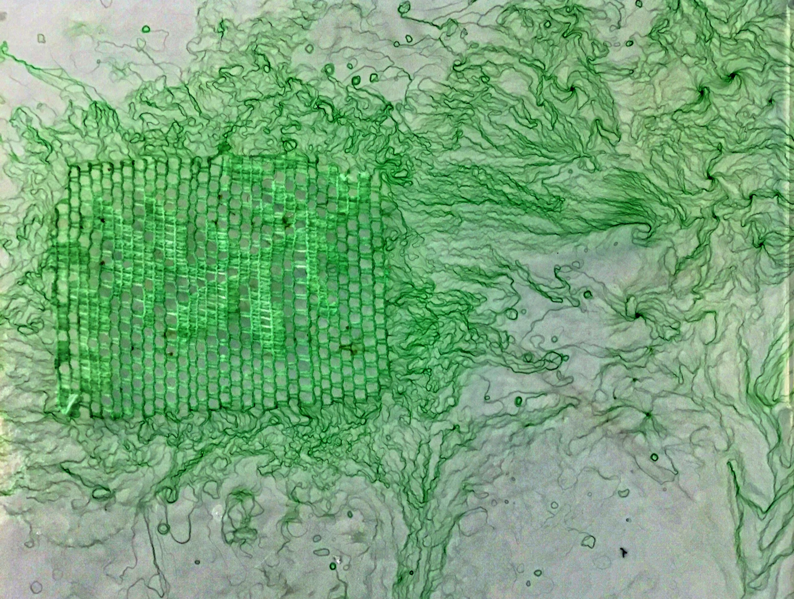 Credits: Victoria Geaney, Dr Simon Park and photosynthetic Cyanobacteria Oscillatoria (grown over cotton lace on agar plate). Photography: Victoria Geaney and Dr Simon Park.
